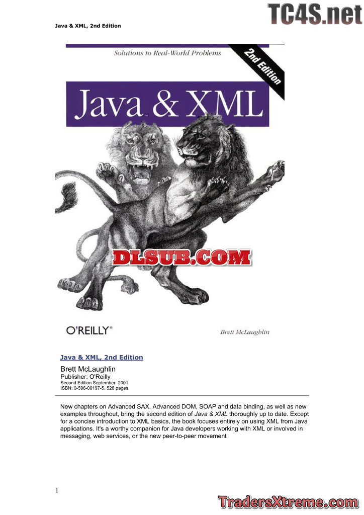 Oreilly Java And Xml 2nd Edition Brett Mclaugblin - JPG Image File