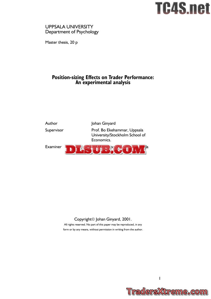 Johan Ginyard Position Sizing Effects On Trader Perfomance